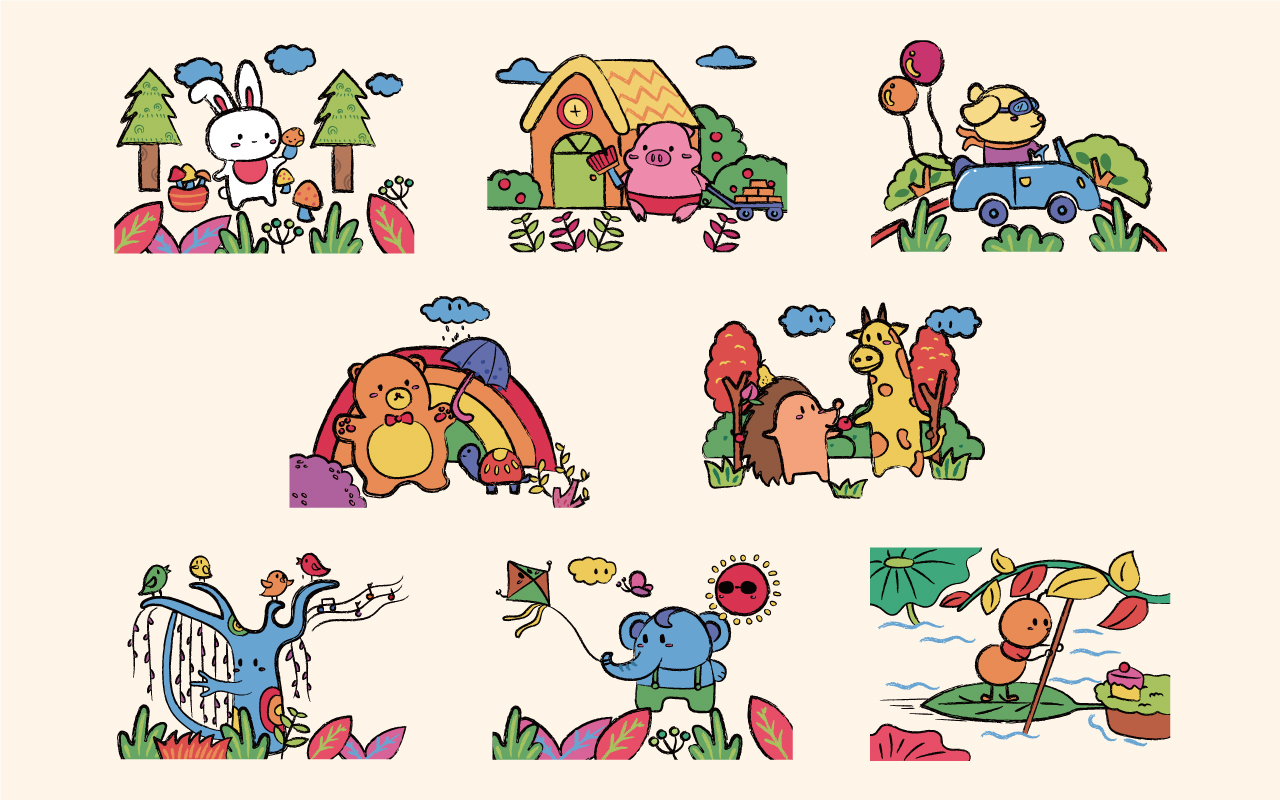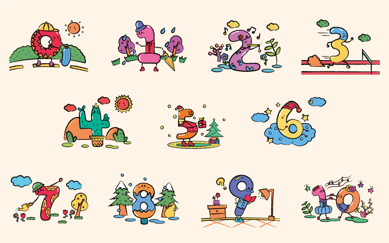 產(chǎn)品通過將枯燥的數(shù)字、靜物、動物擬人化的畫法